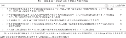 表1:男性生育力保存的適用人群建議及推薦等級(jí)