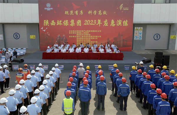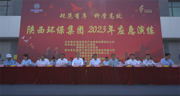大美蒲城山清水秀,將相故里演練礪兵。為進(jìn)一步強(qiáng)化安全生產(chǎn)責(zé)任意識,檢驗應(yīng)急協(xié)同聯(lián)動機(jī)制,提升企業(yè)與地方聯(lián)合處置突發(fā)事故應(yīng)急救援能力水平,6月29日,陜西環(huán)保集團(tuán)聯(lián)合蒲城縣人民政府、渭南經(jīng)濟(jì)技術(shù)開發(fā)區(qū)管委會在三秦環(huán)保股份公司下屬德昌公司舉辦以“規(guī)范有序 科學(xué)高效”為主題的2023年火災(zāi)聯(lián)動應(yīng)急演練。陜西環(huán)保集團(tuán)黨委書記、董事長郝軍亮,黨委副書記、董事、總經(jīng)理顧峰,蒲城縣縣長薛斌、副縣長王華中,渭南經(jīng)濟(jì)技術(shù)開發(fā)區(qū)管委會主任史小鵬出席。陜西環(huán)保集團(tuán)副總經(jīng)理李釗主持。