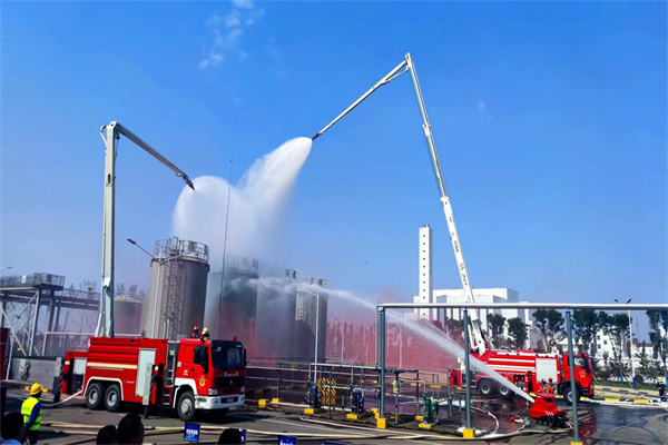 “請各小組就位。”隨著現(xiàn)場總指揮顧峰一聲令下,各應(yīng)急隊伍聞令而動,勢如破雷,聯(lián)動應(yīng)急演練正式開始。演練模擬甲醇罐車泄漏自燃進(jìn)行應(yīng)急處置,火勢引燃罐區(qū),一名操作員輕度燒傷昏迷,從事發(fā)第一時間啟動響應(yīng)程序到開展自救,從事故升級請求外部支援到政企聯(lián)動全面開展救援,各行動組分秒必爭、有條不紊,密切配合。地面,十余位曾獲“三等功”榮譽(yù)的消防指戰(zhàn)員“逆行”火災(zāi)一線,耐高溫消防機(jī)器人零距離偵察、零距離降溫、零距離滅火、零距離堅守,抗洪搶險排澇車、大噸位水罐消防車快速排澇、穩(wěn)定供水、“救”在眼前。天空,舉高噴射消防車精確打擊著火點(diǎn)、全面壓制火勢火頭。最終在多兵種聯(lián)合作戰(zhàn),各單位密切配合下現(xiàn)場火情完全撲滅、環(huán)境指標(biāo)恢復(fù)正常、污染危害全面消除、應(yīng)急響應(yīng)順利終止。