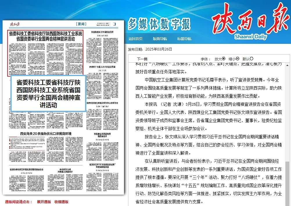 3月26日,陜西日報以《省國資委舉行全國兩會精神宣講活動》為題,對省國資委系統(tǒng)學(xué)習(xí)宣傳貫徹全國兩會精神情況進行了報道,其中重點對陜西環(huán)保集團黨委書記、董事長郝軍亮提出的環(huán)保集團貫徹落實意見進行了報道?,F(xiàn)刊載如下,以饗讀者。