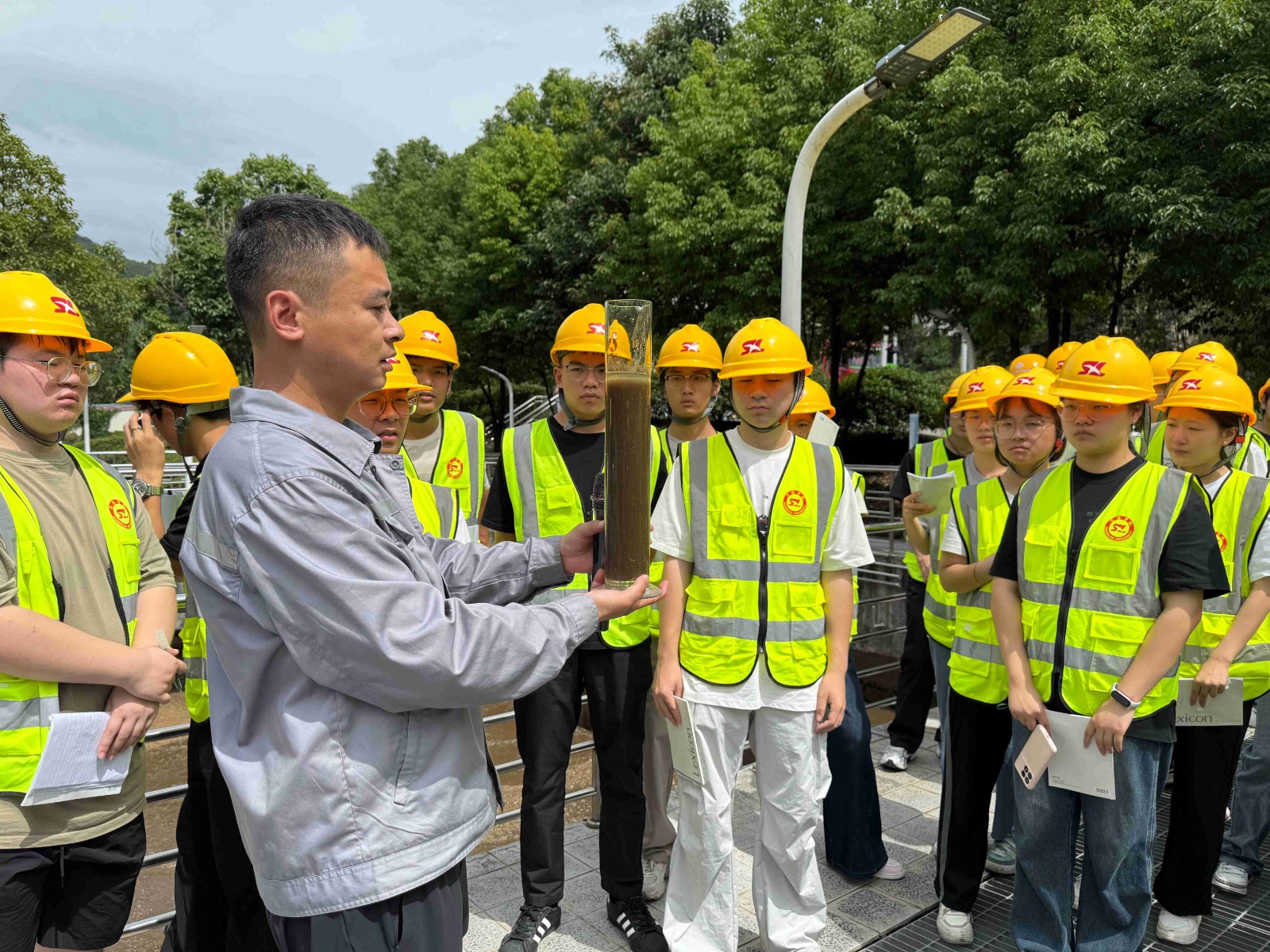 活動(dòng)現(xiàn)場,工作人員首先向師生們介紹了污水處理廠的概況及運(yùn)行情況,隨后,帶領(lǐng)大家依次參觀細(xì)格柵、生化池、消毒池、出水口等污水處理設(shè)施,系統(tǒng)講解污水從收集、處理到達(dá)標(biāo)排放的全流程工藝。在互動(dòng)問答環(huán)節(jié)中,現(xiàn)場工作人員針對污泥處置、水質(zhì)監(jiān)測等問題進(jìn)行專業(yè)講解,并通過現(xiàn)場陳列處理前后的水樣對比,讓師生們直觀見證污水處理成效,深化環(huán)保知識(shí)認(rèn)知。