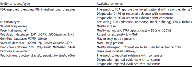 Level A Biomarkers that predict response or resistance to FDA-approved therapies for a specific type of tumor Biomarkers included in professional guidelines as diagnostic for a specific type of tumor Biomarkers included in professional guidelines as prognostic for a specific type of tumor